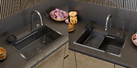 СТАЛЬНАЯ РАКОВИНА, ЧЕРНАЯ, смеситель MOKA TIKTOK WATERFAD
