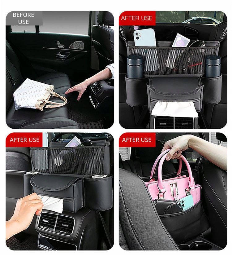 Сумка-органайзер для хранения вещей между сиденьями, экокожа