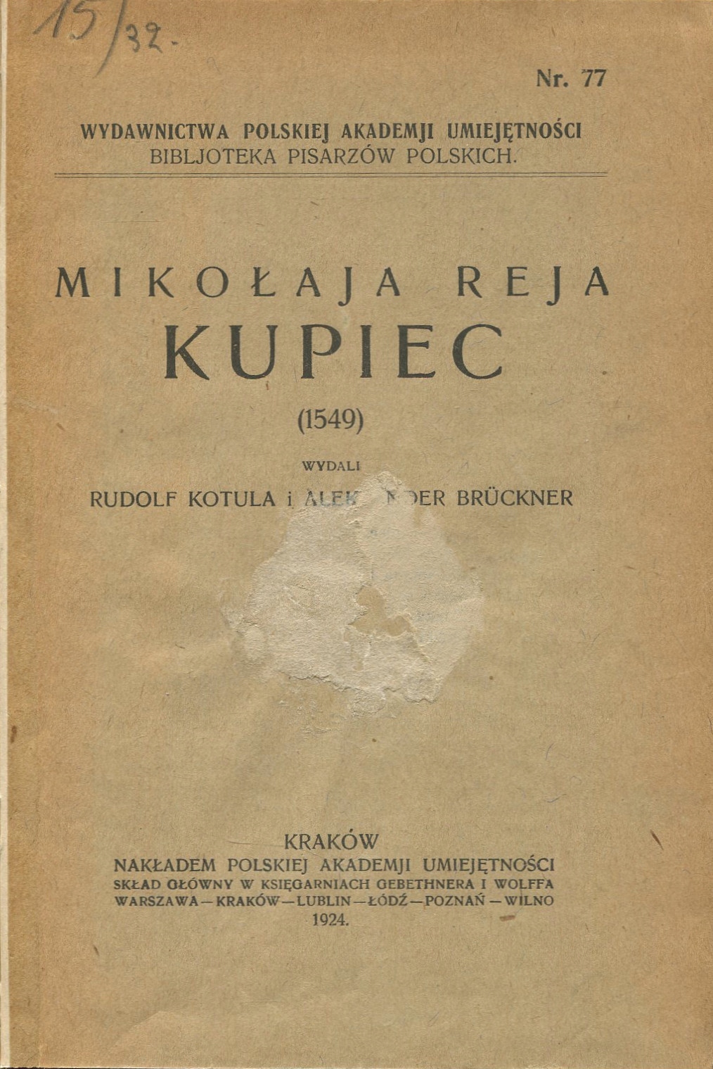 Mikołaj Rej KUPIEC (1549) wyd. Bruckner Kotula 1924