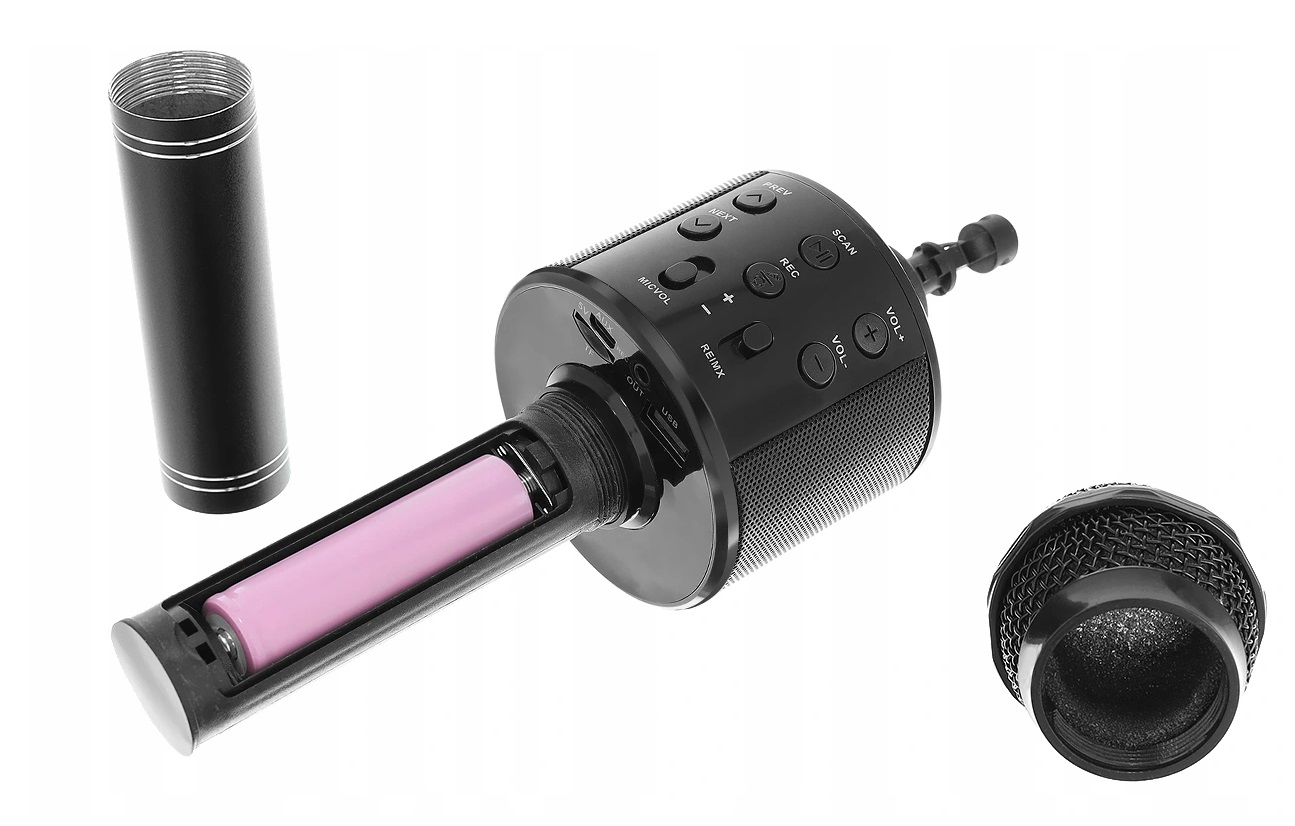 Микрофон имеет 2 встроенных динамика и множество кнопок, предлагающих множество возможностей, их управление плавное, а качество звука, звук голоса и сама громкость хорошего качества, без шумов и помех. Микрофон также идеально подходит в качестве автономного динамика для прослушивания собственного голоса или песен в формате MP3 с телефона, из Интернета или с карты microSD.