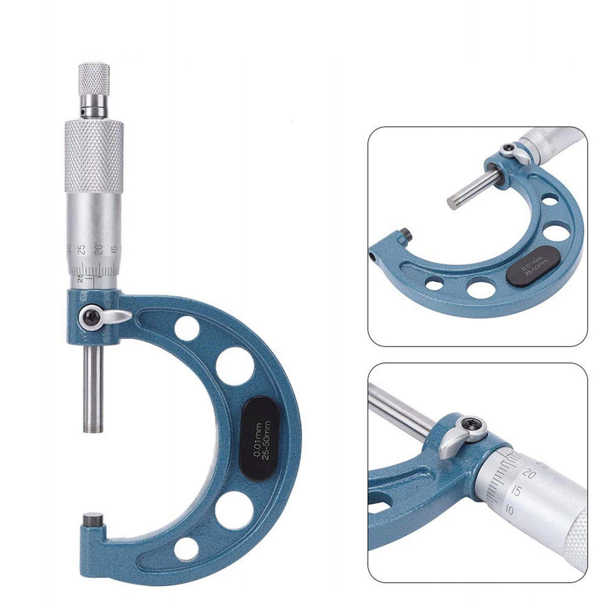- 4 микрометры с измерением диапазонов: 0-25 мм, 25-50 мм, 50-75 мм, 75-100 мм, читаемая шкала с точностью 0,01 мм.