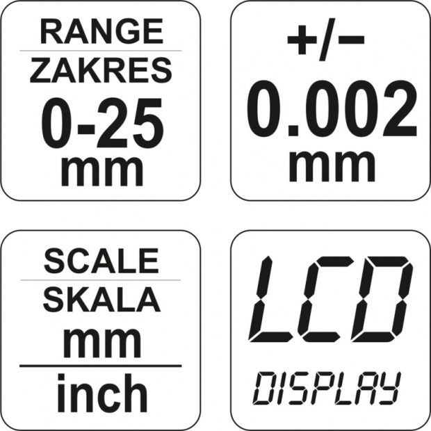 МІКРОМЕТР ЕЛЕКТРОННИЙ 0-25 мм YT-72305 YATO CEFRO