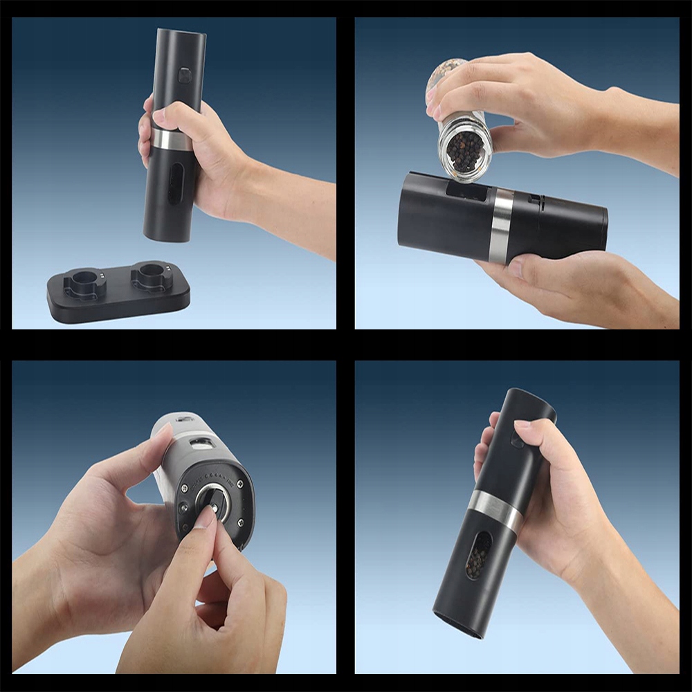 ✔ База с двойной зарядкой: Набор из стечкой из электрического перца поставляется с кабелем C -типа, чтобы быстро заряжать 2 мельницы одновременно в течение 1 часа. При зарядке или работе встроенный синий светодиодный свет автоматически загорается, чтобы облегчить наблюдение, без преувеличения.