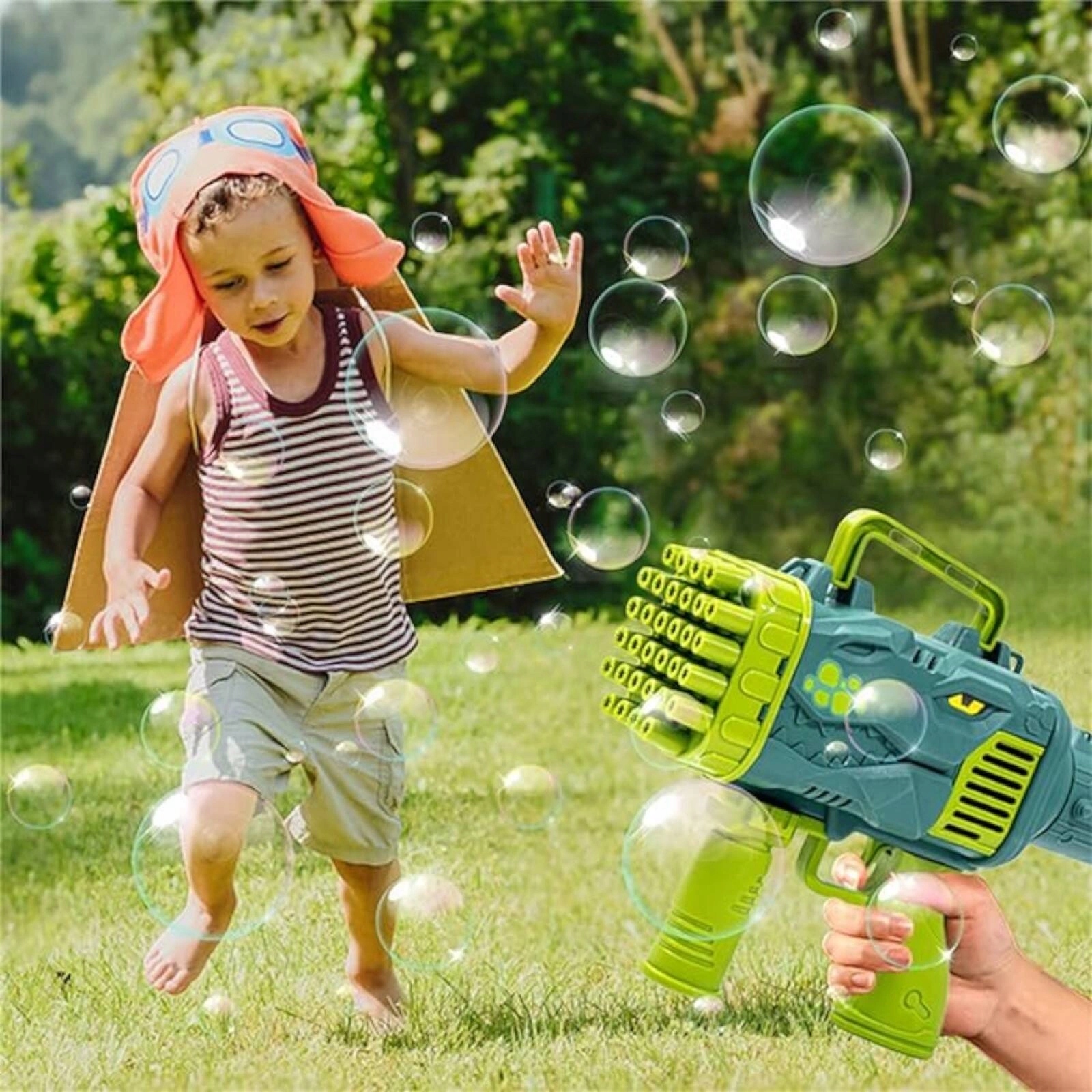 Путешествие во времени в доисторический мир веселья с нашей пузырьковой динозавром Bazooka! Этот мыльный пузырьковый пистолет, оснащенный 32 отверстиями, создан для каждого маленького исследователя. Это фантастическое приключение, где встречаются доисторические существа и современные пузырьковые технологии, создавая незабываемые моменты веселья.