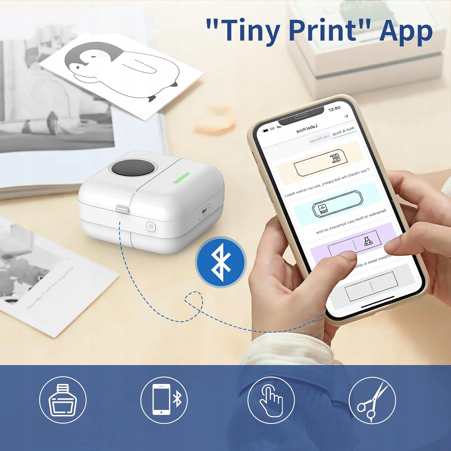 - Принтер использует технологию тепловой печати и не использует чернила, что делает его более удобной, экологически чистой и экономической. Достаточно следовать инструкциям по подключению, чтобы быстро подключиться к смартфону и может использоваться в любое время и печатать в любом месте.