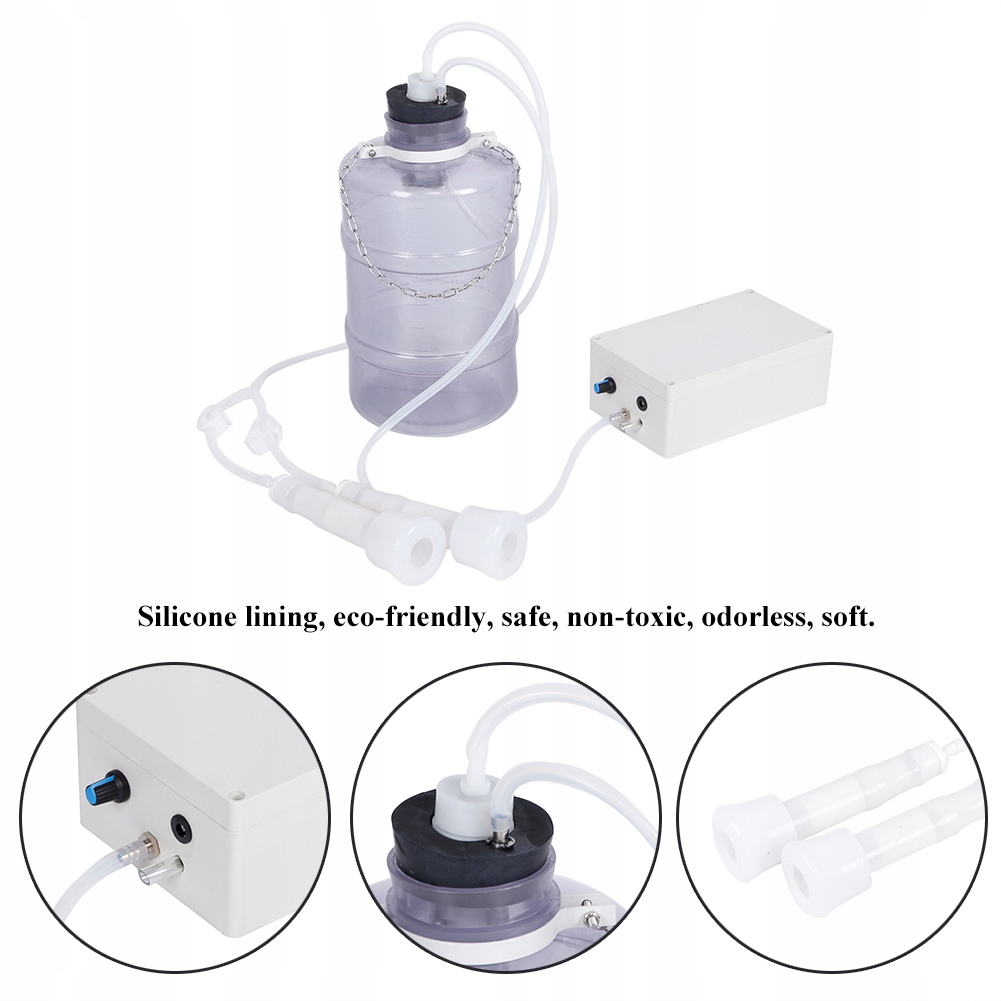 1. Высокая мощность и регулируемый вакуумный насос скорости, оснащенный регулируемым переключателем питания. Мощность может регулироваться в зависимости от толщины глаза козьего молока, защищать грудь, молоко автоматически останавливается, когда молоко будет заполнено. С отверстием вентиляции удобно удалить тепло.