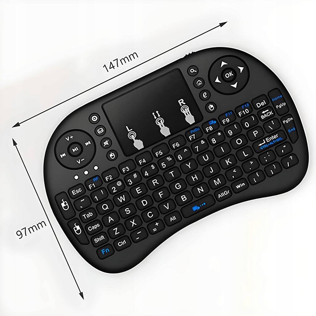 Беспроводная клавиатура MINI I8 с подсветкой Описание: MINI I8 — это беспроводная клавиатура с подсветкой, которая идеально подходит для дома, офиса и развлечений. Он совместим со многими устройствами, включая компьютеры, Smart TV, Android и другие. Клавиатура имеет компактные размеры и удобную форму, что упрощает ее переноску и использование. Он также имеет светодиодную подсветку, которая позволяет комфортно работать в темноте. Особенности: