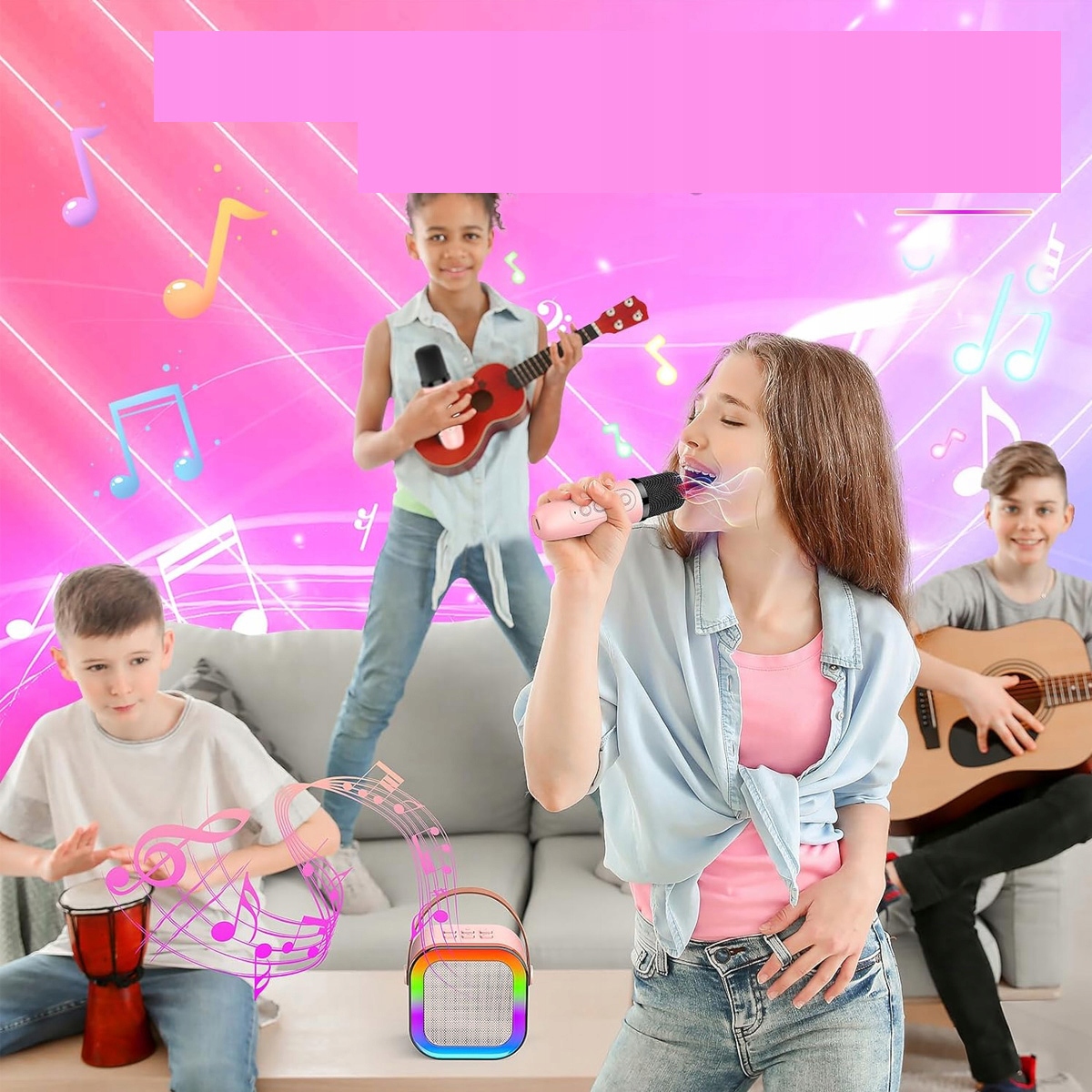 【Многофункциональный набор Bluetooth караоке с микрофоном】 Детские наборы караоке, портативный динамик, музыкальный игрок и освещение вечеринки в одном! Встроенная -в системе Bluetooth 5.0 обеспечивает немедленное испарение и обеспечивает более стабильную передачу и больший диапазон (до 10 м), что облегчает подключение к мобильным телефонам, компьютерам, ноутбукам, телевизорам и т. Д., Она также поддерживает карты TF (не входит в комплект), USB и диск Aux Flash.