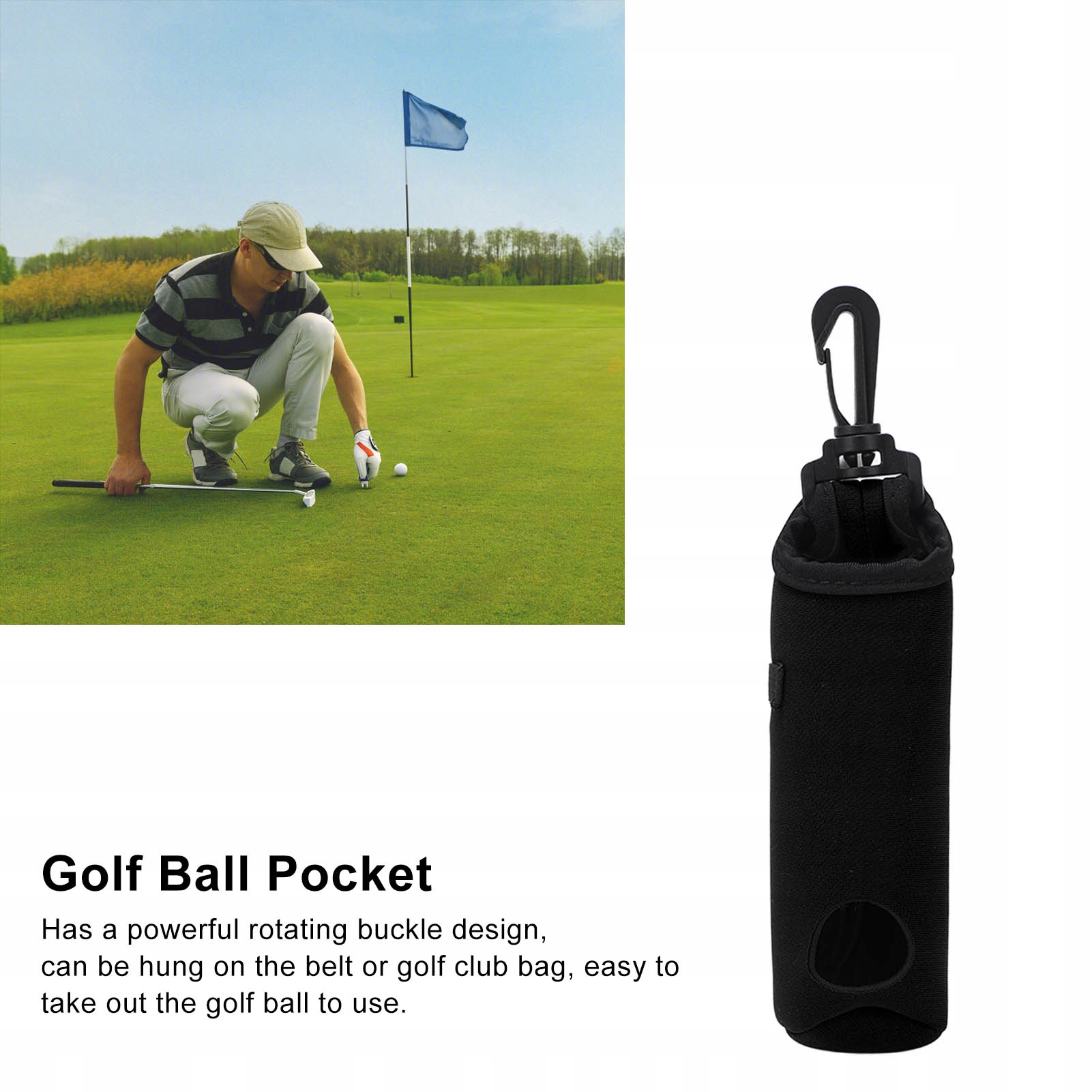 2. Мощная вращающаяся пряжка: у нее есть мощная вращающаяся пряжка, вы можете повесить на ремне или сумку гольф -клуба, одновременно чтобы удалить каркацию для гольфа для использования.