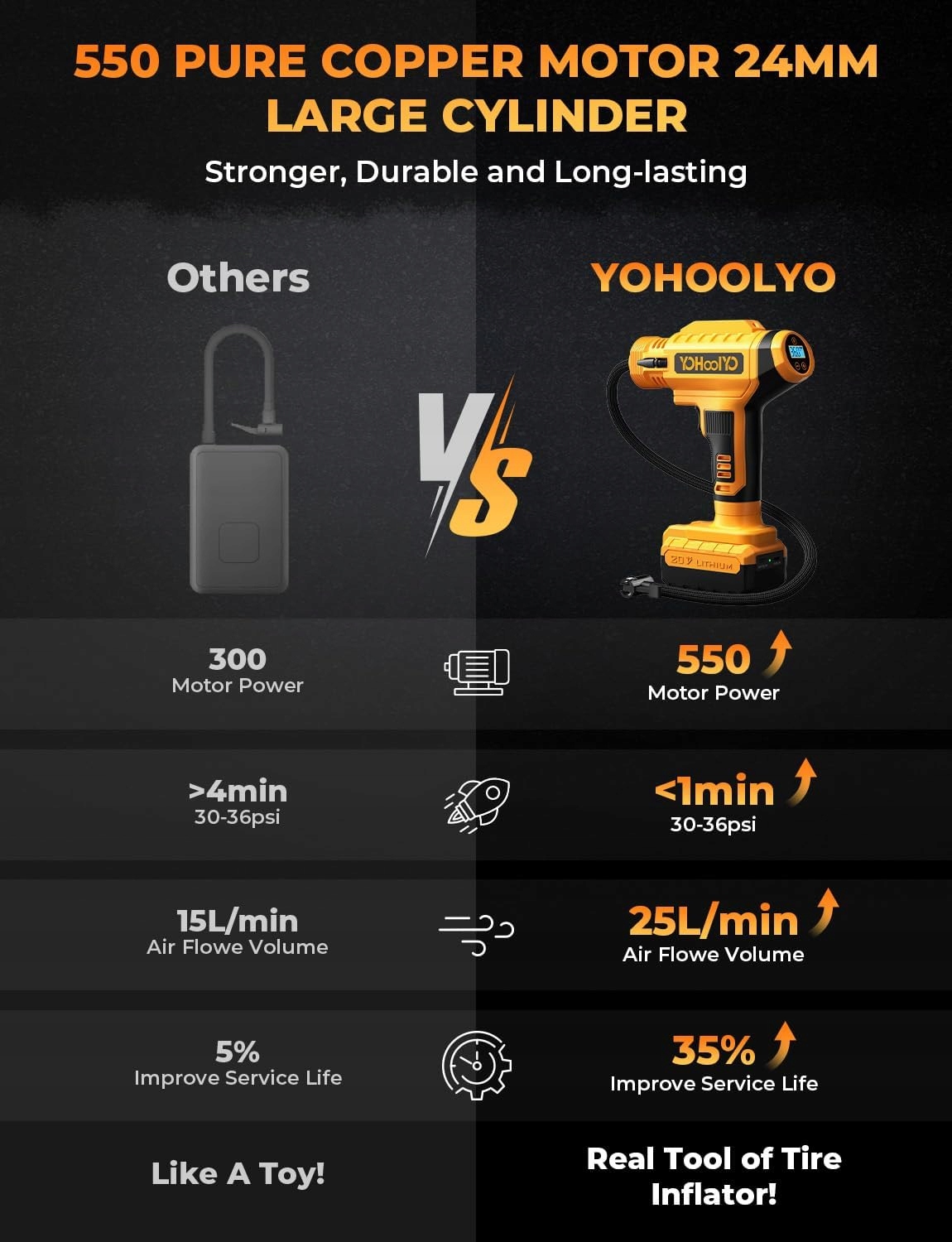 Двойной питание: Портативный воздушный компрессор для перекачки шин Yohoolyo использует источник питания из более легкого гнезда DC 12 В для накачки шин без батареи; 20 В насос шин с питанием аккумулятора облегчает перекачивание. Вам не нужно беспокоиться, что батарея закончится во время путешествия. (Перед использованием полностью заряжайте батарею, нажмите и удерживайте кнопку R в течение 5 секунд, чтобы включить экран)