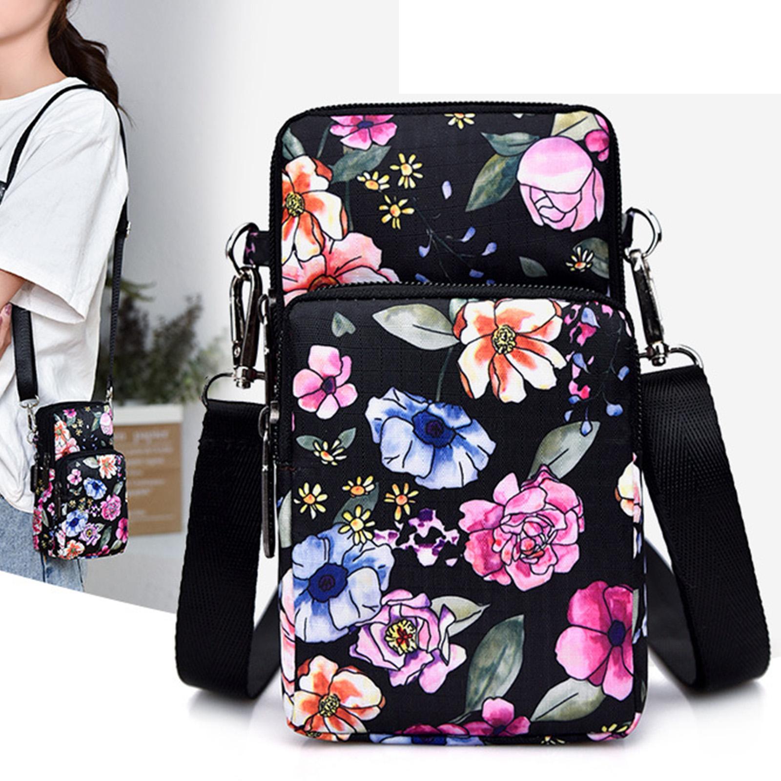 Маленькая сумка для мобильного телефона, легкий регулируемый ремешок для женщин и женщин, дорожная, черный цветок