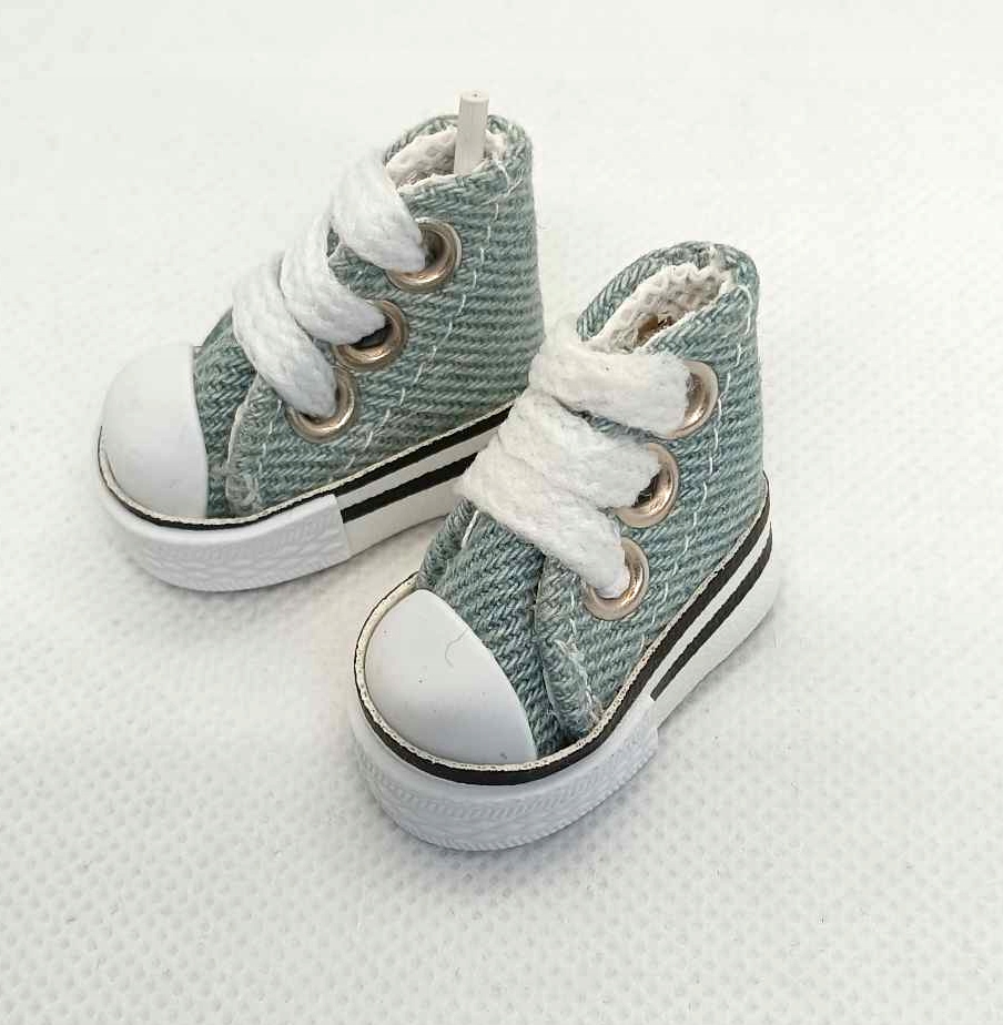 Миниатюрная обувь мини -кроссовки кукол макроле 3,5 см голубые деним