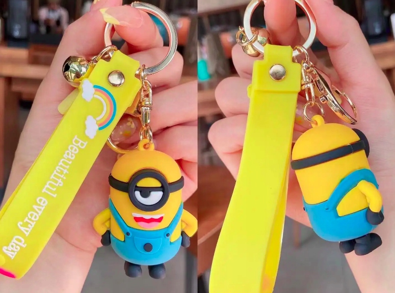 Сенсационное кольцо клавиши с мотивом minion b>, которое также будет работать в виде оригинального дополнения, прикрепленного к вашей блокировке в сумке или рюкзаке. Ключевое кольцо, сенсационное для ключей или сумок. Украшенный луком, дополнительно подвеска для удержания в руке и золотистого цветного кольца для ключей.