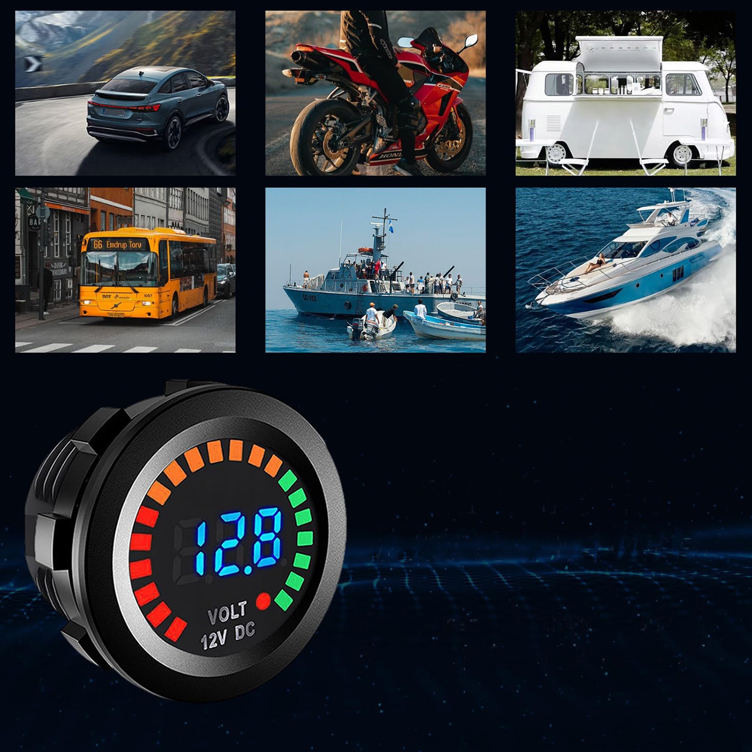 ✅ 【Хорошее использование】 : цифровой измеритель напряжения светодиода 37 мм с длиной 40 мм с зажимами может быть широко совместима с большинством видов транспортных средств DC 12V , которые содержат автомобили, мотоциклы, грузовики, суда, суда и так. Это важный аксессуар для обнаружения напряжения аккумулятора автомобиля в режиме реального времени.