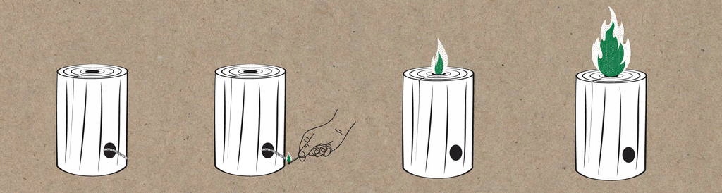 Поместите каминную свечу Woodson на плоскую негорючую поверхность на расстоянии не менее 2 метров от других легковоспламеняющихся материалов. Расположите ее так, чтобы было удобно зажечь фитиль, отверстие без фитиля обращено вверх.