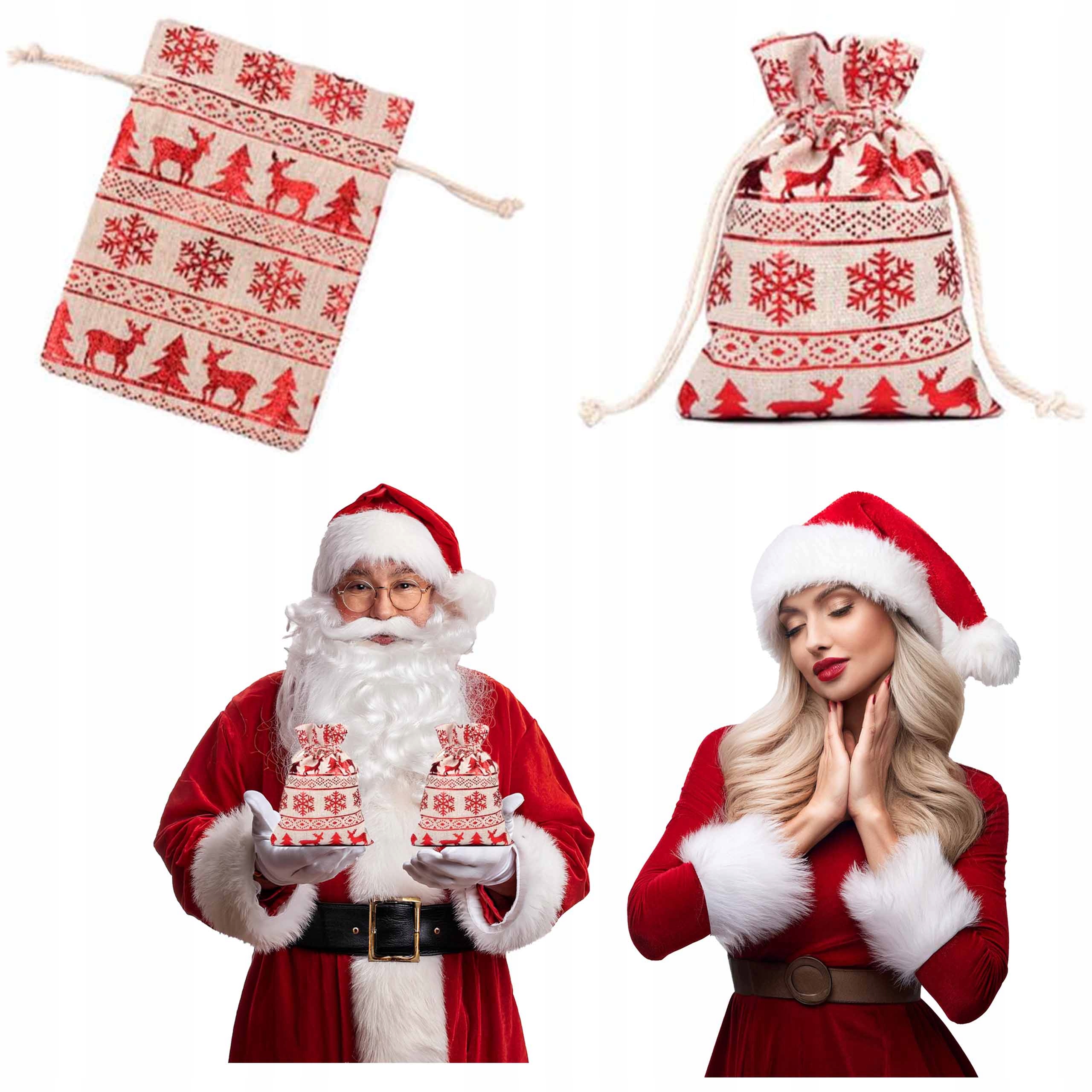 ❄ Рождественский джут -мешочек - идеально подходит для подарка! Образцы оленей и снежинок. Идеальный как экологическая упаковка для подарков, мелочей или украшения праздничного стола!