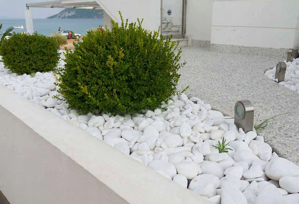 Если есть камень, который подходит везде, ко всему и всегда будет подходить, то это белая галька Тасоса. Идеальный цвет, форма и качество.