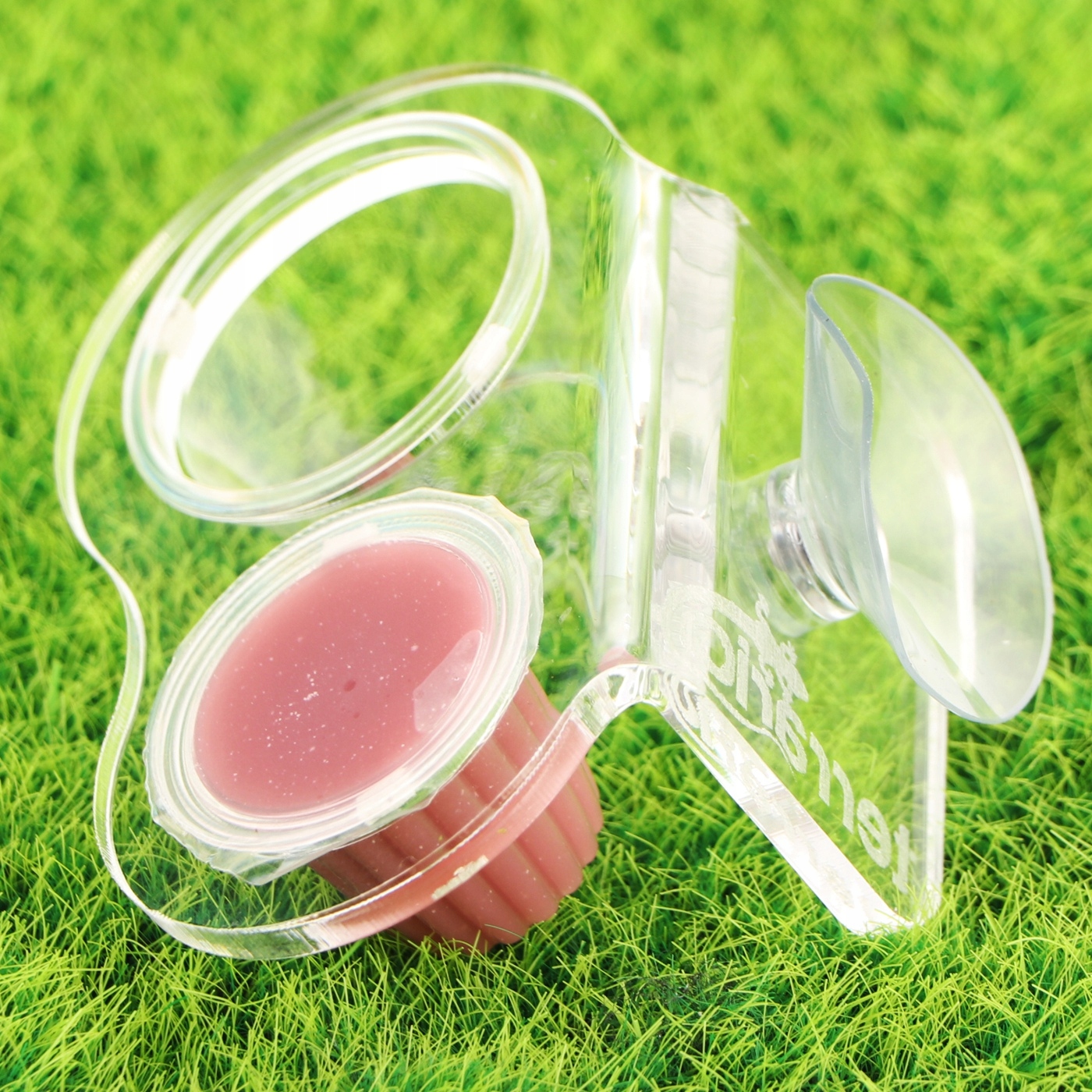 всасывающие чашки, акриловое тело и пластиковые миски. Все прозрачно больше, чем стекло. Чаша становится невидимой на террариуме, чтобы не мешать его естественному декору.