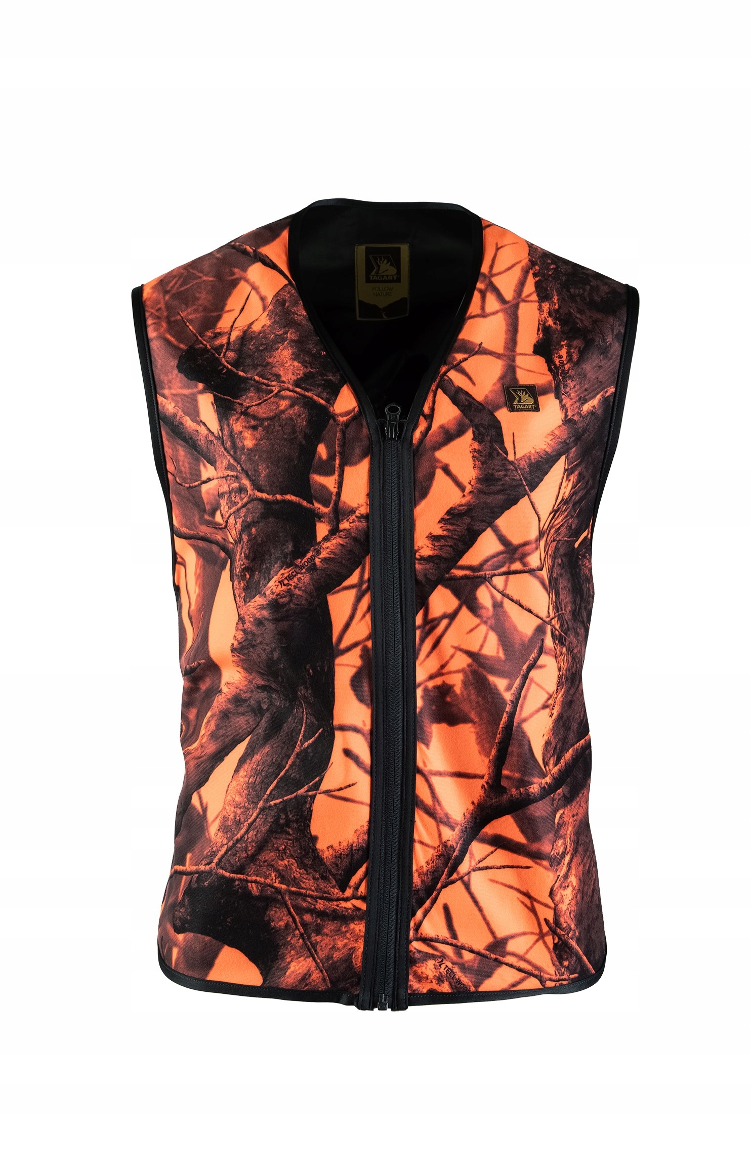 <р> Жилет в оранжево-коричневом камуфляже «Зимний огонь» производства польской компании Tagart. <р> Жилет с мембраной ТПУ 10000, идеально подходит для групповой охоты. Жилет имеет очень оригинальную расцветку - оранжево-коричневый камуфляж, что значительно увеличивает нашу заметность в лесу. Эта модель выпущена в серии Winter Fire вместе с курткой и брюками Thunder Thermo, которые вы можете найти здесь. Жилет делает пользователя видимым на большом расстоянии независимо от погодных условий. Более того, этот набор цветов не виден охотничьим животным, поэтому мы не привлекаем внимание. <р> Жилет очень удобен, его крой разработан таким образом, чтобы обеспечить пользователю максимальный комфорт и свободу движений. Специально разработанные эластичные резиновые вставки по бокам позволяют легко наклониться или сделать снимок из любого положения. Жилет защищает нас от ветра, обеспечивая тепловой комфорт и от небольших осадков. Большим преимуществом представленной модели является возможность сложить ее в сумку, идущую в комплекте, поэтому жилет в сложенном виде занимает очень мало места. <р>Характеристики продукта: