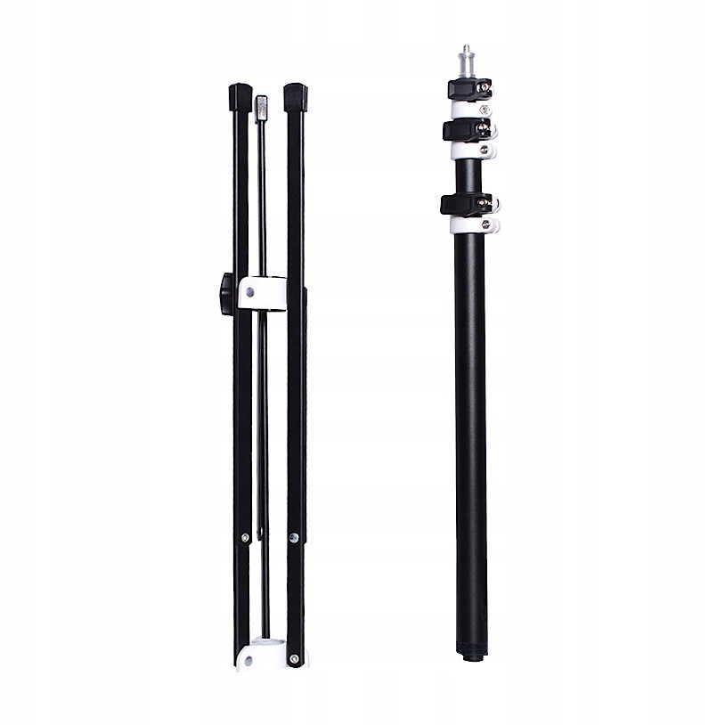 Основной столбец состоит из четырех разделов , заблокированных металлическими зажимами . Высота 200 см достигается в классической системе штатива, когда ноги штатива максимально расширены. Когда они бегут параллельно земле, максимальный объем работы составляет 170 см . Это также положение, обеспечивающее самую высокую стабильность . Штатив имеет стандартную головку (оправу) 16 мм , заканчиваемое потоком 1/4 дюйма, которая значительно расширяет его функциональность и позволяет устанавливать широкий спектр фотографических аксессуаров. Благодаря прочной конструкции Metal и алюминия его максимальная грузоподъемность составляет 3 кг . Ноги оснащены не -скользящими крышками. Дополнительным преимуществом является черное, матовое поверхность штатива, которая не отражает свет, а белые элементы облегчают работу на съемочной площадке, когда весь доступный свет фокусируется на главной сцене.