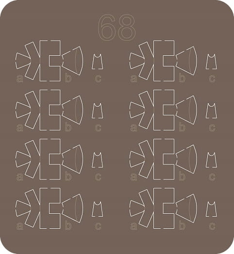 • 1 лист бумаги, окрашенной в пакетном режиме, с элементами, вырезанными лазером.