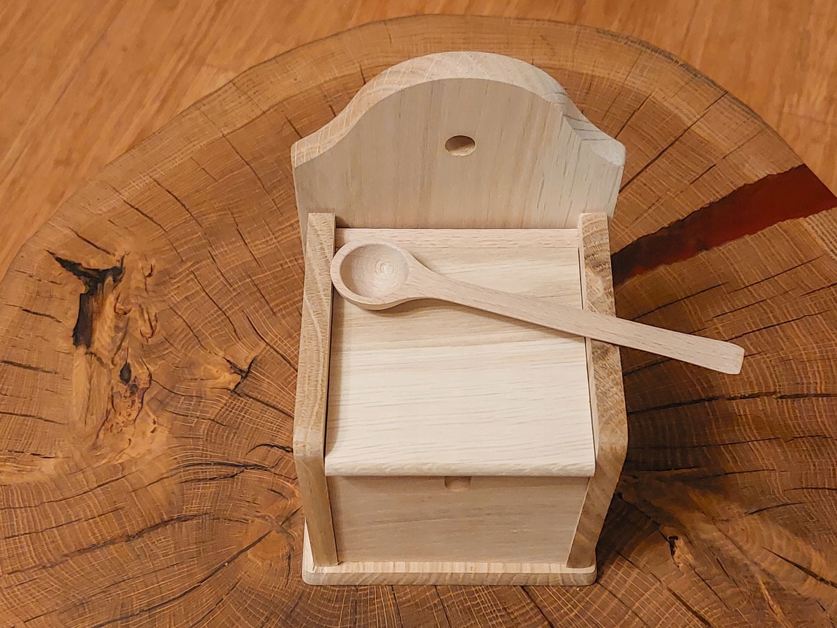 Ємність з кришкою Сільничка дерев'яна, еко ложка