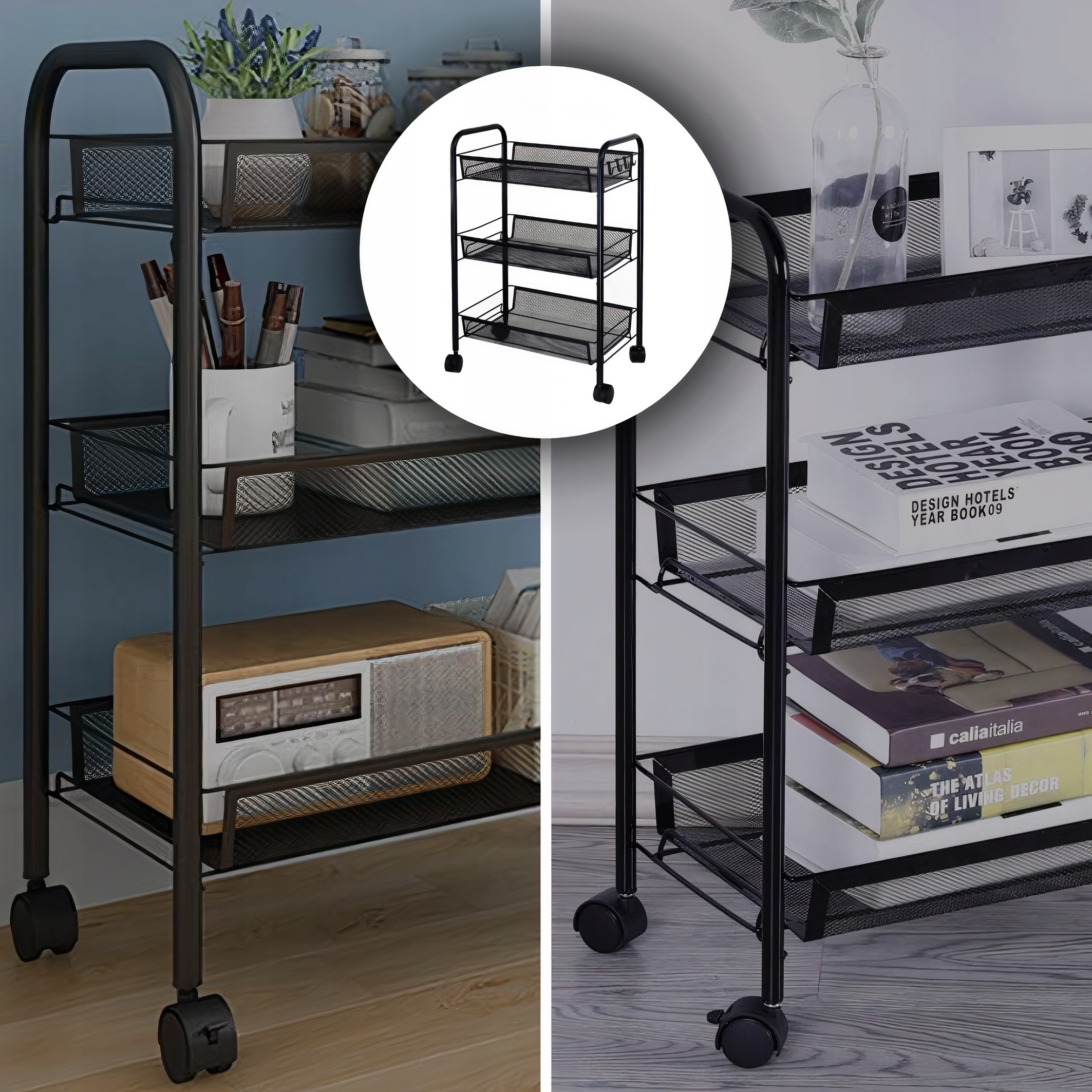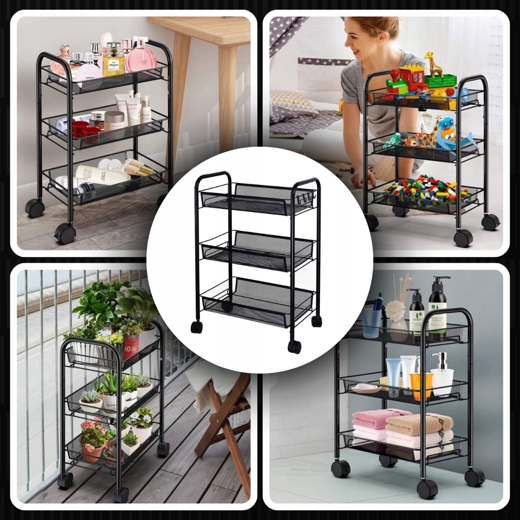 Эта черная полка на колесах была специально разработана, чтобы помогать вам организовать даже самые узкие пространства и поддерживать порядок в различных комнатах.