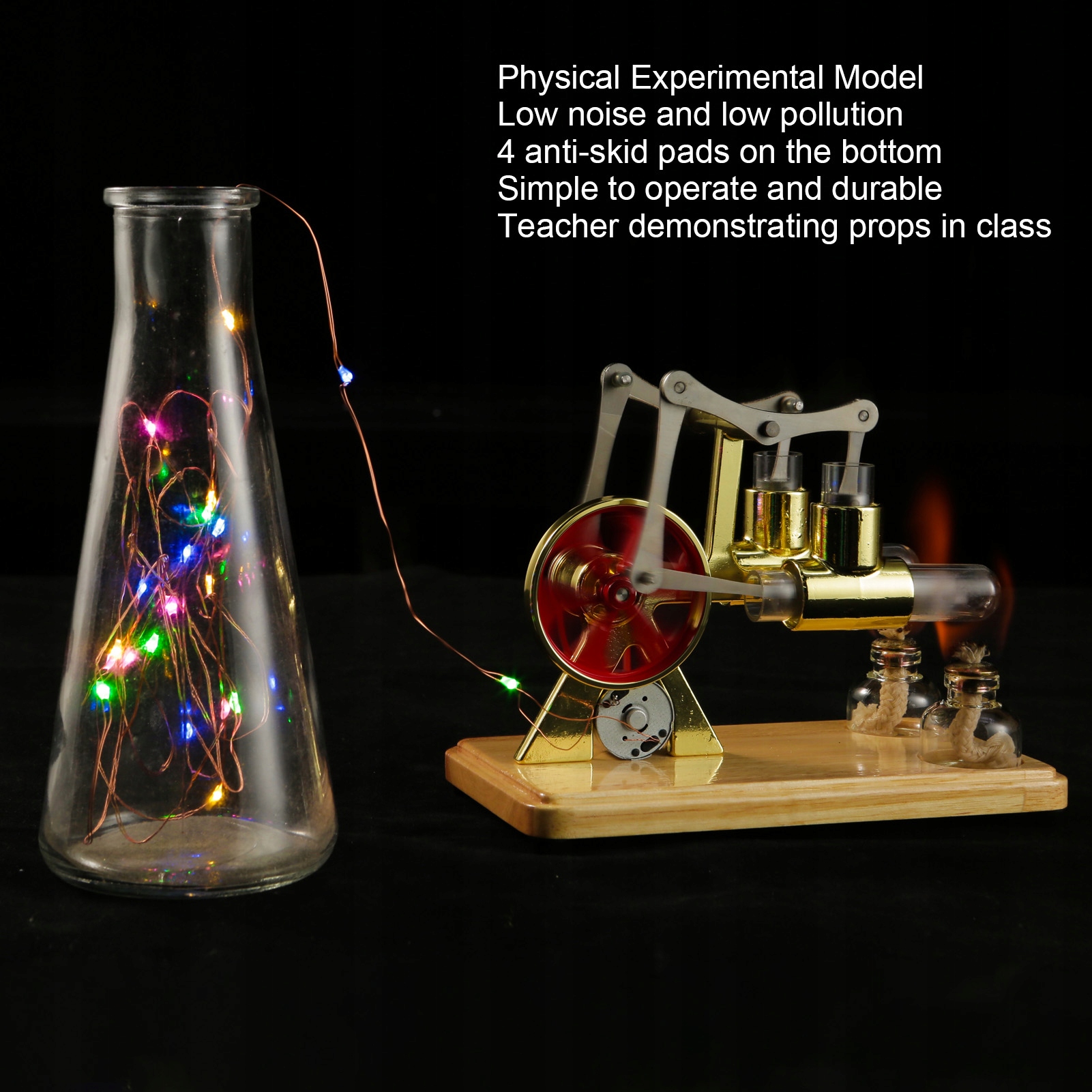 Модель двигателя Стирлинга, научная физическая модель, золотая двухцилиндровая модель двигателя Стирлинга, обучающая игрушка