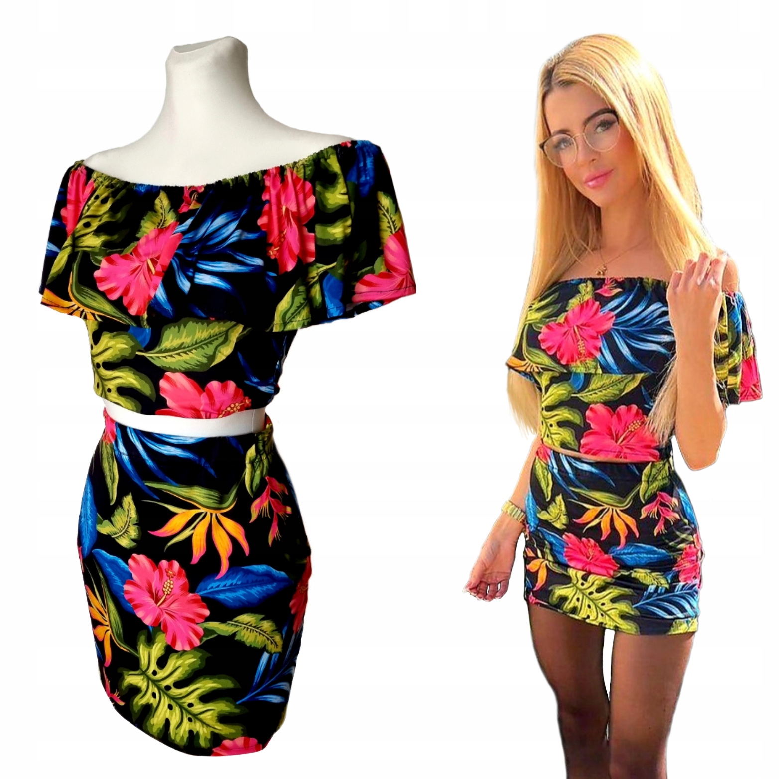 Топ с короткими рукавами + МИНИ-юбка с ЦВЕТАМИ: