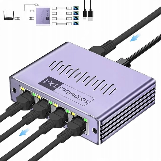 Дистрибьютор Ethernet от 1 до 4 1000 мб/с, быстрый интернет -коллектор LAN RJ45 для CAT 5/5E/6/7/8 кабелей, Ethernet Router Switch на компьютер/ноутбук/телевизор (4 устройства подключены одновременно)