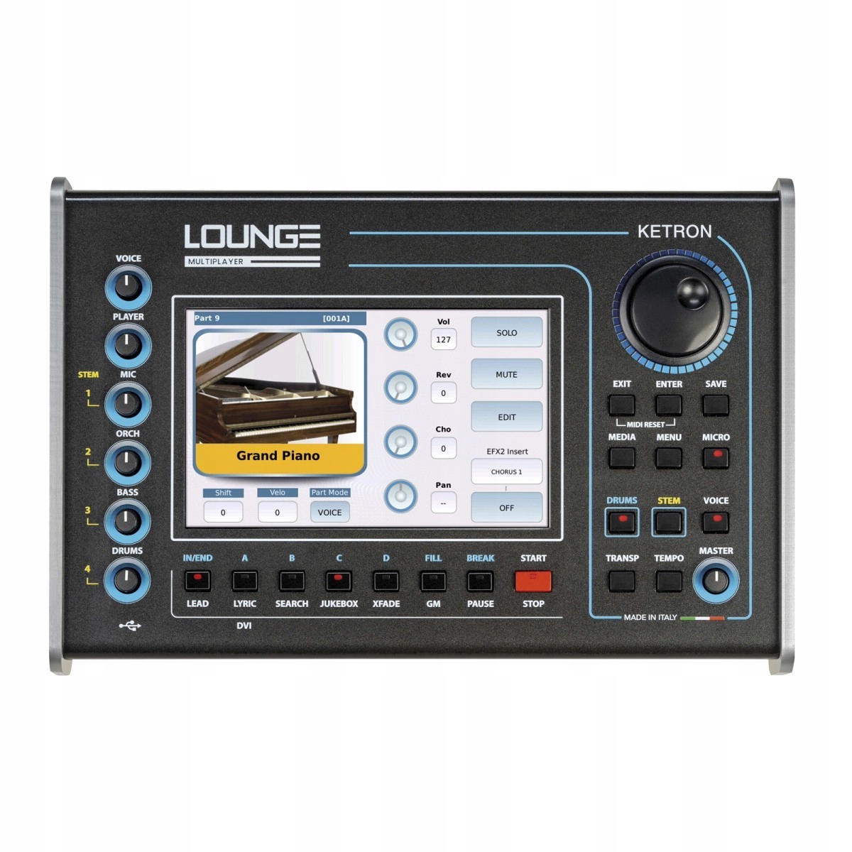 Ketron Lounge — это компактная многопользовательская игра, которую также можно использовать в качестве драм-машины, генератора звука и перфоратора для профессионального использования на сцене. В многопользовательском режиме Lounge может читать и воспроизводить файлы широкого спектра форматов, включая MIDI, MP3, Wav, Txt, Pdf, Mp4 и другие. Оборудованный таким образом зал имеет все возможности и функции, необходимые для просторного вечера караоке. Кроме того, Lounge предлагает такие функции, как тексты песен, Lead Mute, Fade, Search и XFade, два отдельных микрофонных входа с эффектами и 3-голосный вокализатор. Также имеется звуковой генератор с несколькими звуками и 62 новыми акустическими и электронными стереонаборами ударных. Функция Drum Remix позволяет вам сделать ремикс MIDI-файла со звуковой дорожкой из большой библиотеки Live Drums. Все живые барабаны были записаны в студии настоящими барабанщиками.