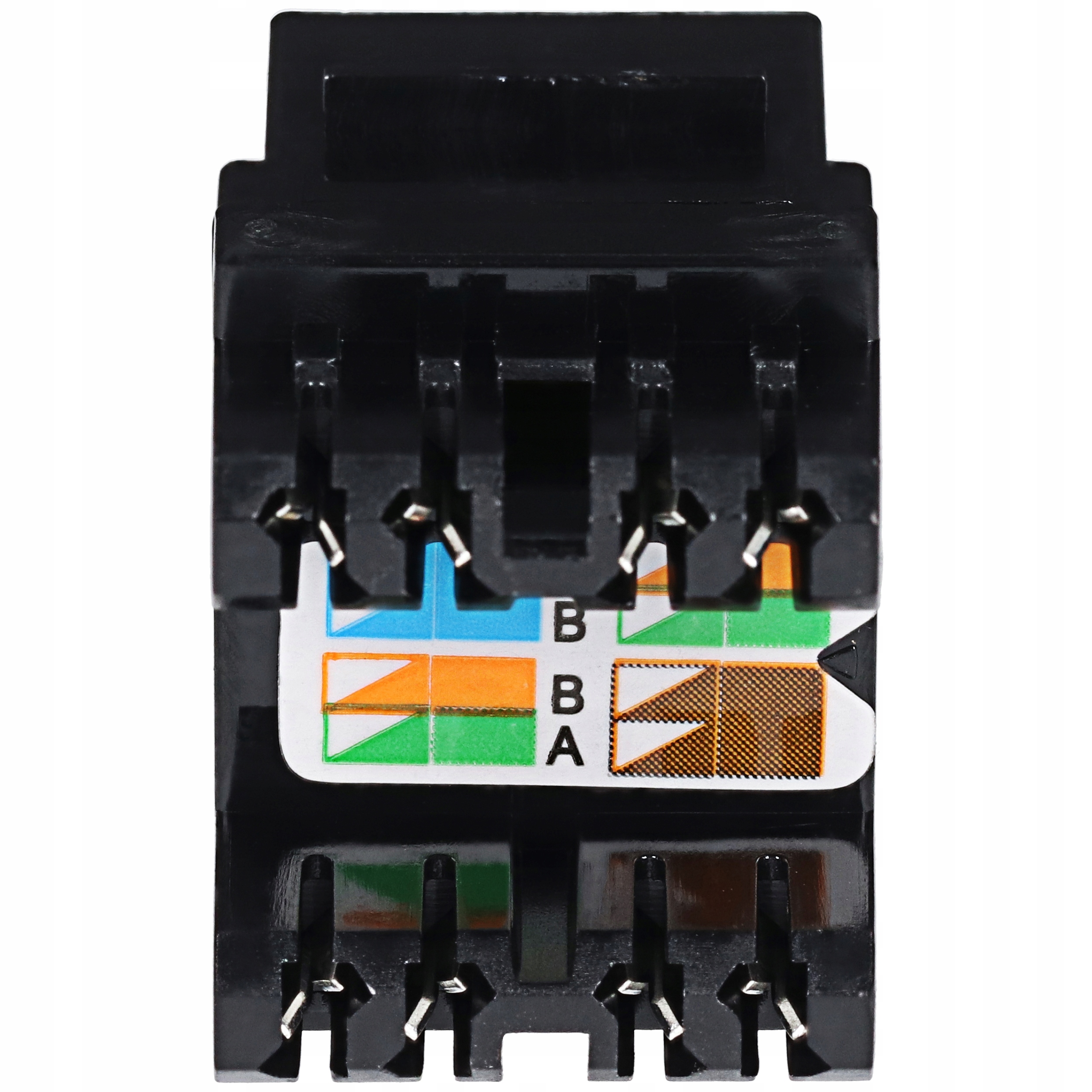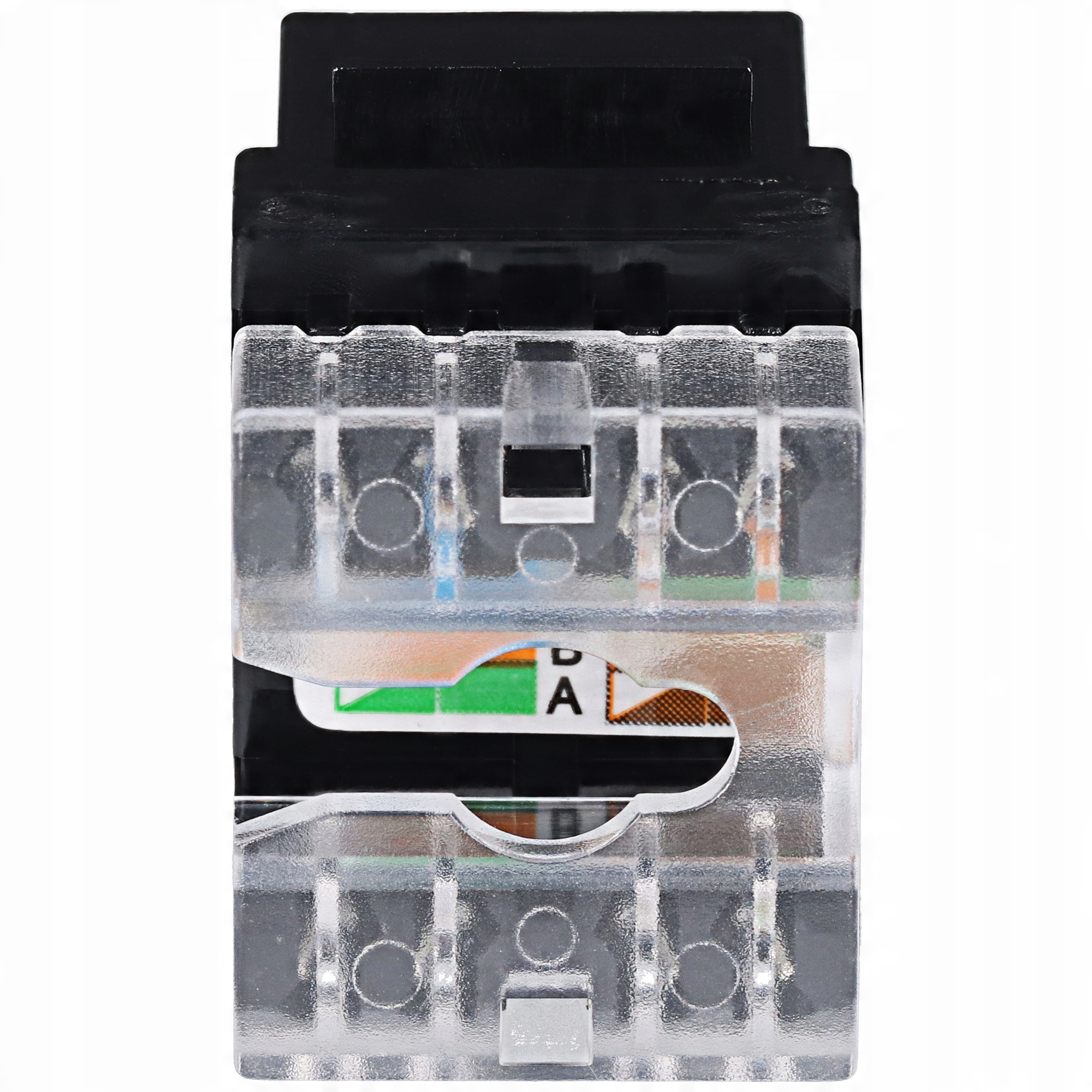 Неэкранированный модуль Keystone RJ-45 на базе инструмента зажимается сзади, используется в конструкции типичного сеть передачи данных.