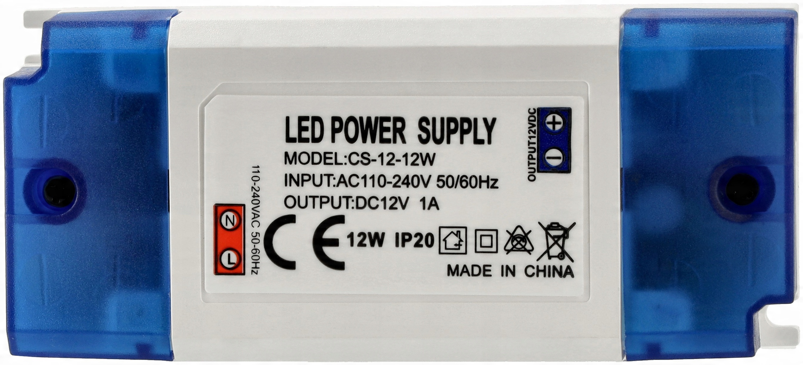 - Модель: Светодиодный мебельный блок питания 1А 12Вт IP20 12В