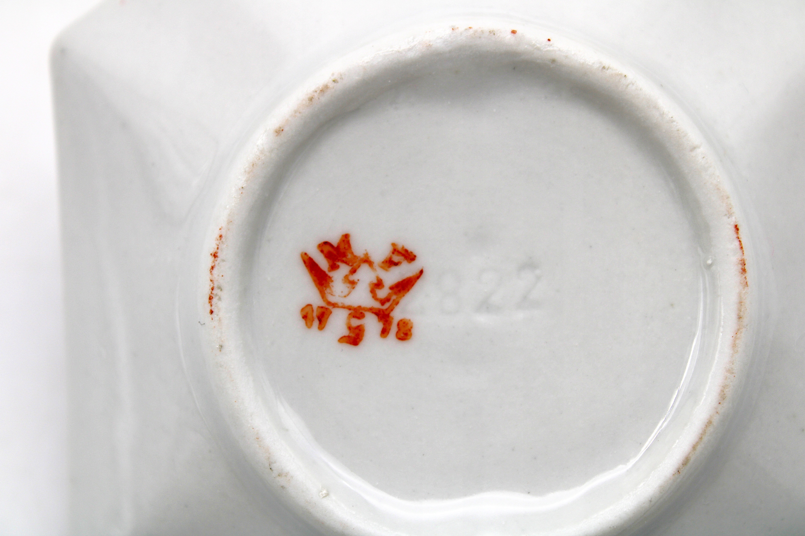Я рекомендую старую маленькую чашку мокко фарфорового фарфора - Верхняя Франкония из середины века, как на сканировании, имеет естественные временные абразины и небольшие естественные недостатки завода