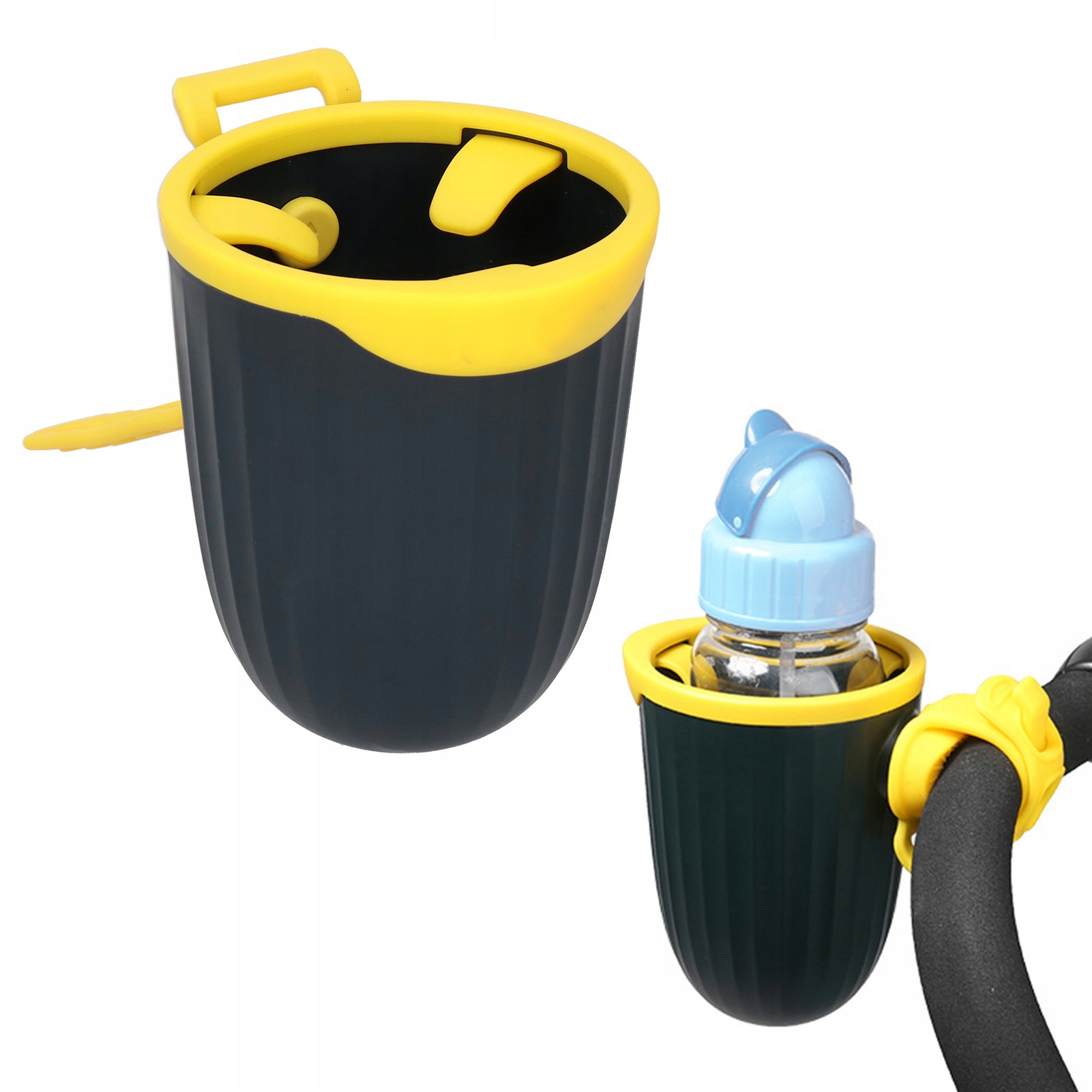 1. Поместите складчик чашки на держатель коляски, вытяните ремешок и отрегулируйте ширину в соответствии с ручкой