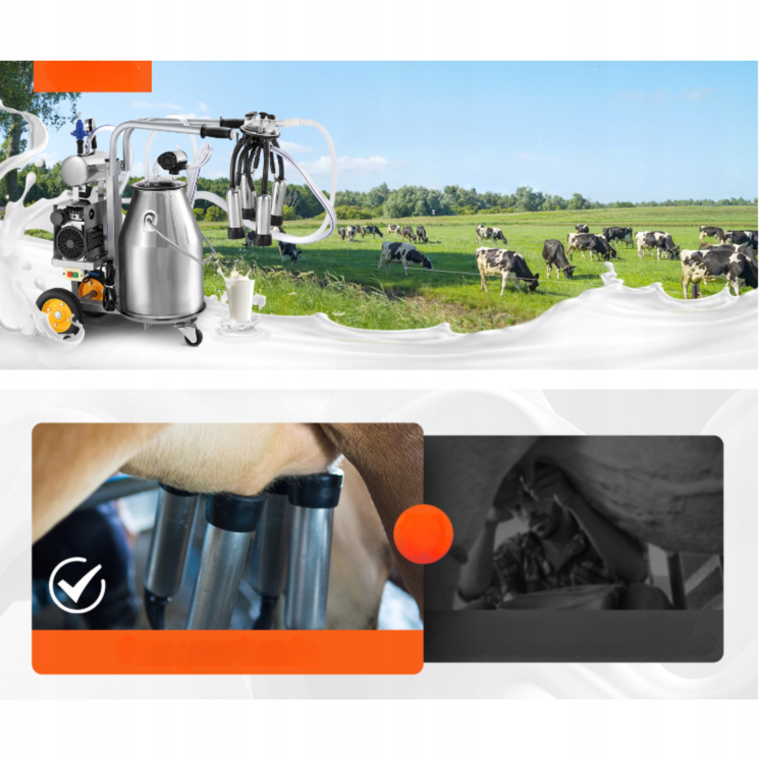 - ✔ пульсная вакуумная система - естественное доение: доильная машина имитирует естественное всасывание теленка , которое снижает стресс в коровьем , и в то же время увеличивает производство молока . Материалы: ведро из нержавеющей стали 304 - долговечный и прост в чистке.
