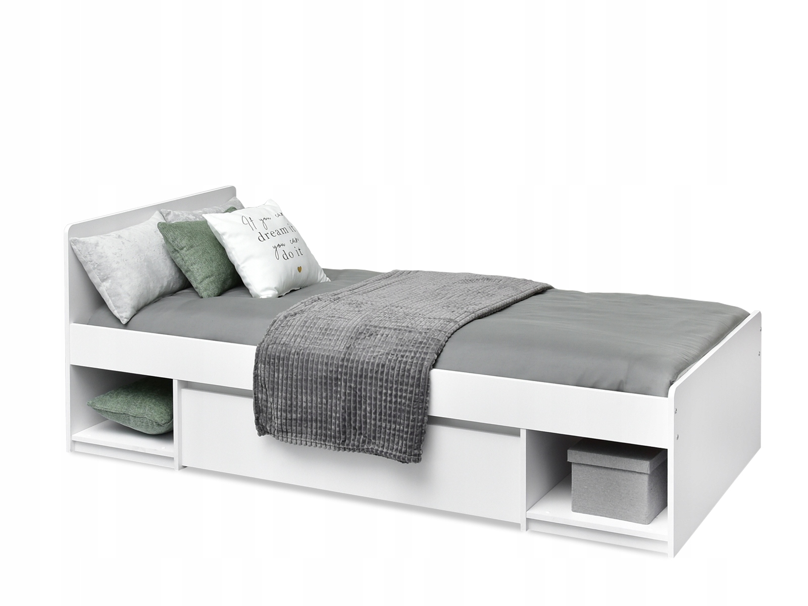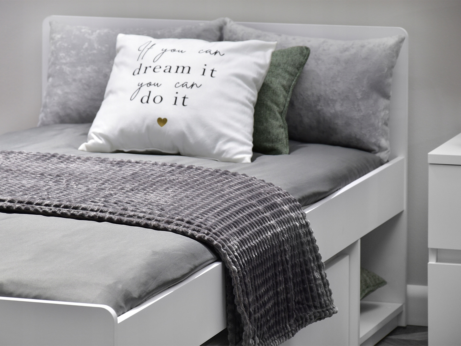 Молодежная односпальная кровать с ящиком для постельных принадлежностей с белой рамой Libro 9