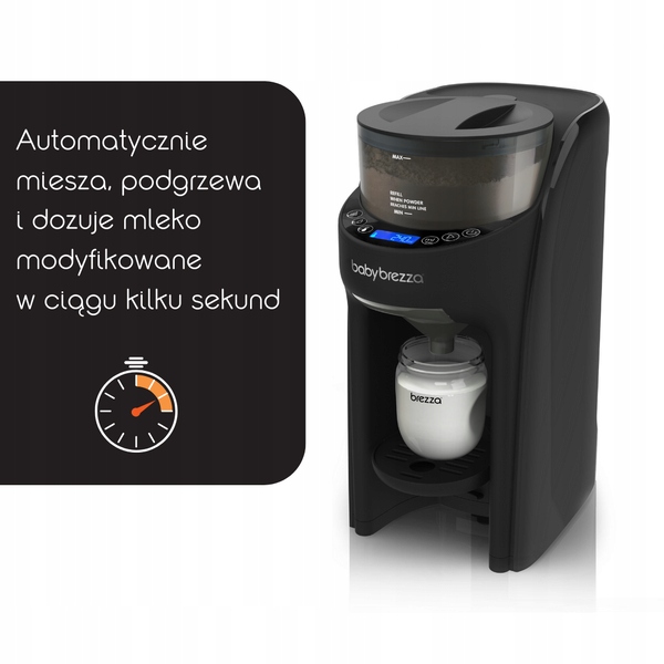 Машина смешивает молочную смесь с водой и выдает однородную смесь выбранной температуры — прямо в бутылочку. На сайте www.babybrezza.pl имеется список проверенного молока, сгруппированный в 10 категорий, чтобы максимально точно подобрать идеальные настройки Formula Pro Advanced для используемого вами молока, что ограничивает возможность ошибки в дозировке. . Попрощайтесь с пролитым молоком на кухонную стойку посреди ночи и плачем вашего ребенка, ожидающего бутылочку 5 минут – добро пожаловать Baby Brezza Formula Pro Advanced!