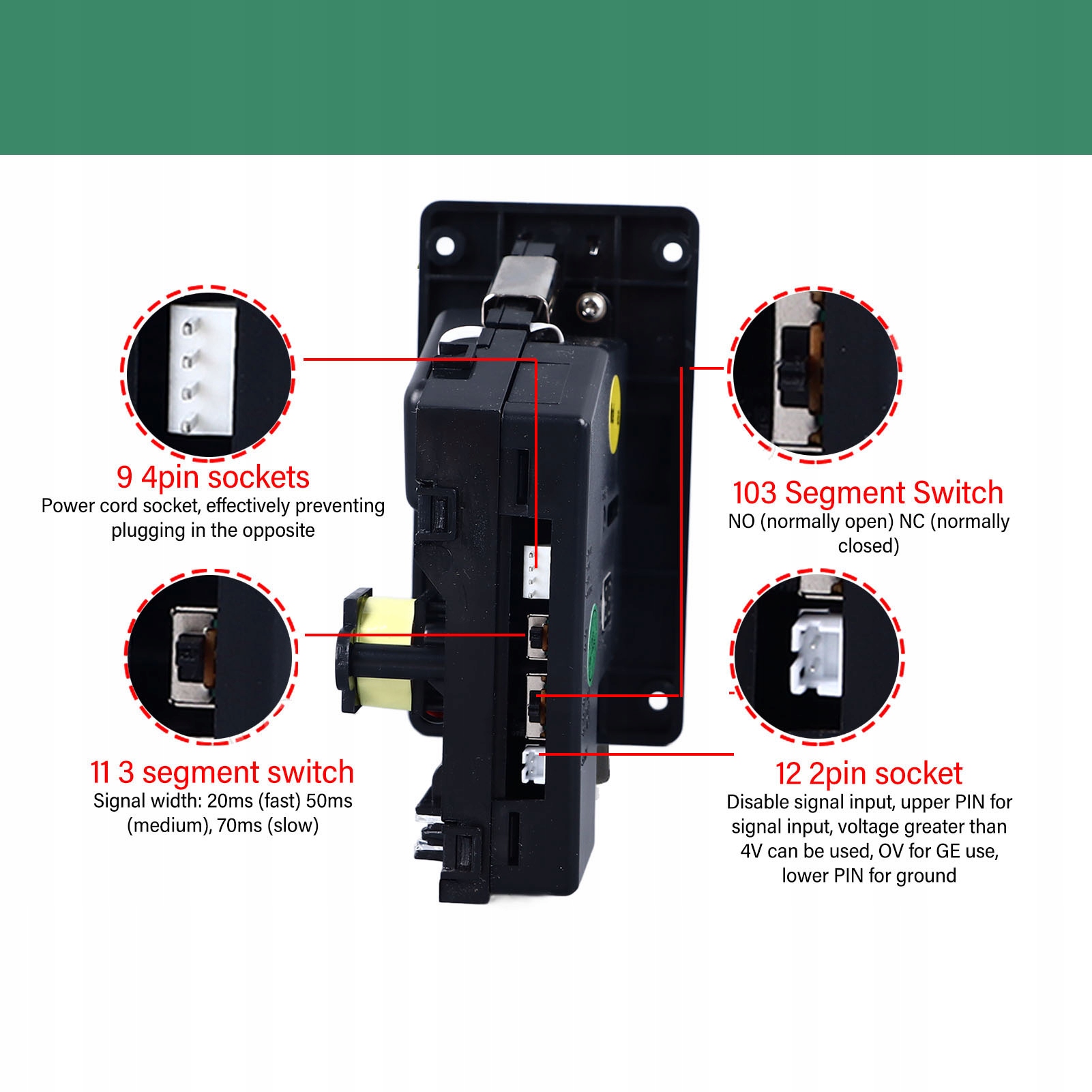3. Кнопка возврата: приемник многих монет с кнопкой возмещения и розетком возмещения с кнопкой «Настройки» позволяет установить тип и точность монеты в соответствии с вашими собственными потребностями.