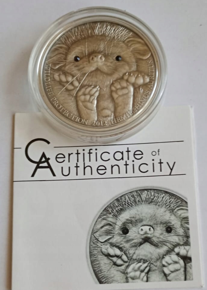 Moneta Jeż uszaty 1 Uncja Srebra Kryształy Swarovski Mongolia 2012 Srebro
