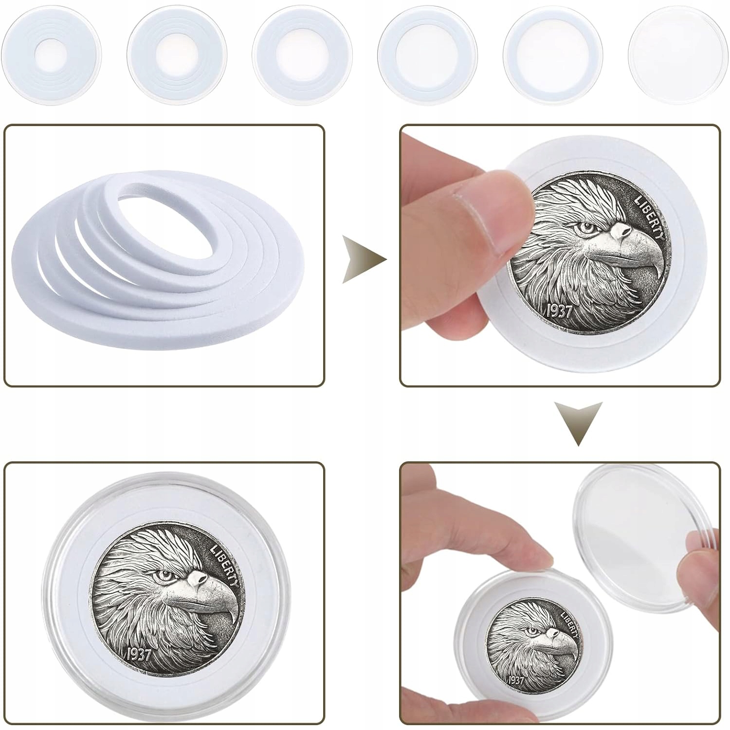 🪙 【Регулируемые уплотнения из ЭВА и конструкция с прорезями】 В комплект входит 5 типов уплотнений. Уплотнения из пены ЭВА, каждого типа по 6 шт, всего 30 шт., соответствующие уплотнениям из пены ЭВА. Круглое и износостойкое внутреннее кольцо из ЭВА регулируется, его можно отрегулировать в соответствии с размером монеты. Пенопластовые уплотнения помогают удерживать монеты на месте и хорошо защищают монеты, предотвращая их смещение и царапание. В монетнице есть прорезь, а дизайн каждой прорези упрощает ее использование, сохраняя ваши сувенирные монеты в чистоте и порядке.
