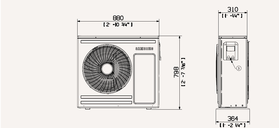 Samsung EHS MONO STANDARD — это моноблочные тепловые насосы компактной конструкции. Во внешнем блоке весь фреоновый контур замкнут, а значит, монтажнику не требуются лицензии Ф-ГАЗ. Модуль управления, входящий в стандартную комплектацию тепловых насосов EHS MONO STANDARD, позволяет подключать к системе внешние устройства и регуляторы других компаний. Функция Smart Grid обеспечивает идеальную работу теплового насоса Samsung с фотоэлектрической установкой.