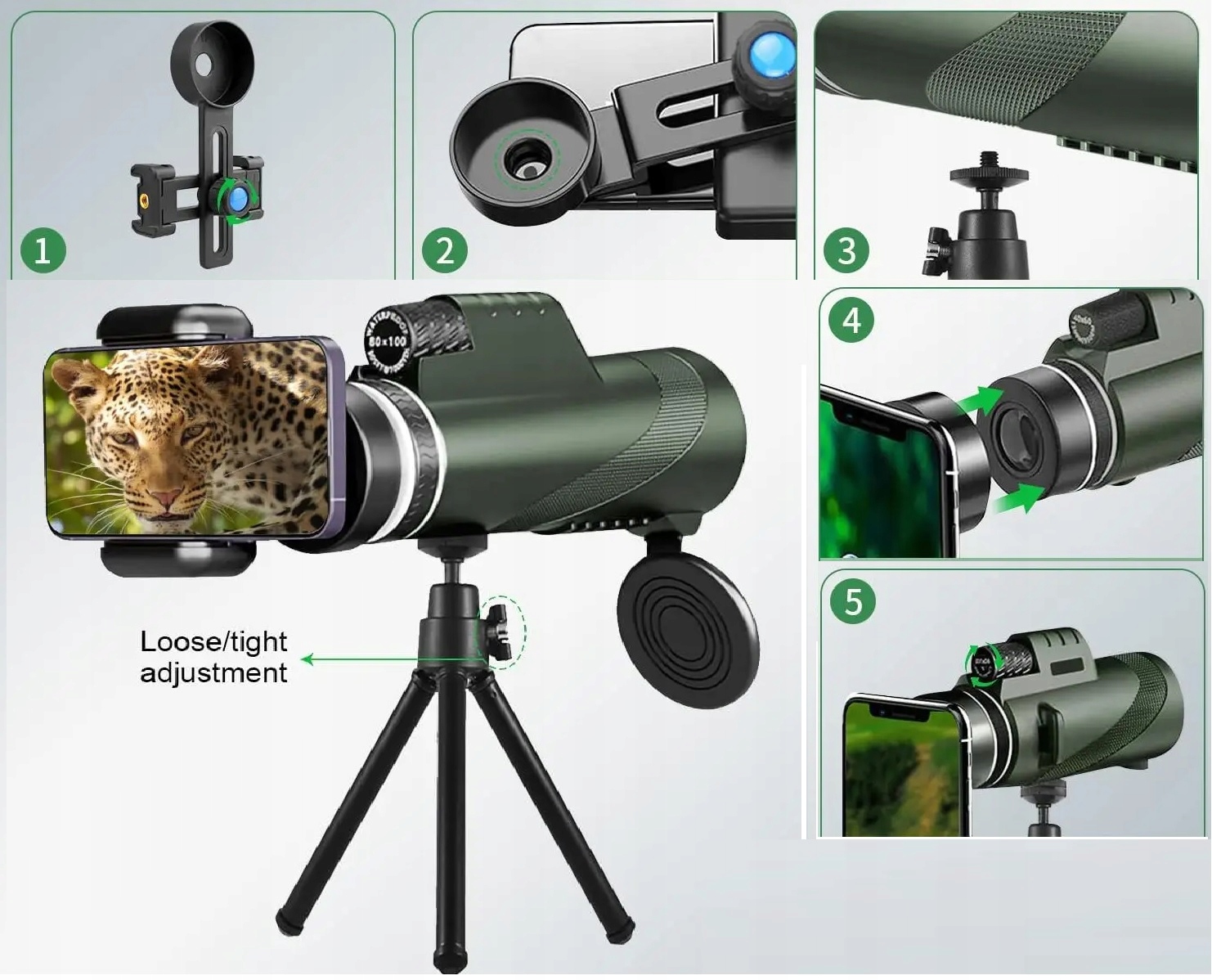 МОНОКУЛЯРНЫЙ ТЕЛЕСКОП СО ШТАТИВОМ ДЛЯ ТЕЛЕФОНА 80х100