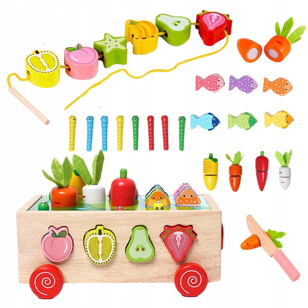 🍓 Игра 7 в 1: ① ① ① Морковь - это веки и сбор червей. ⑥ Игра в формы с деревянными блоками с разными отверстиями. Сортировка, укладка и вставка игрушек, все блоки легко вписываются в фруктовую инвалидную коляску, разрабатывая хорошие привычки хранения с раннего возраста. Различные игры могут сделать ребенка счастливее