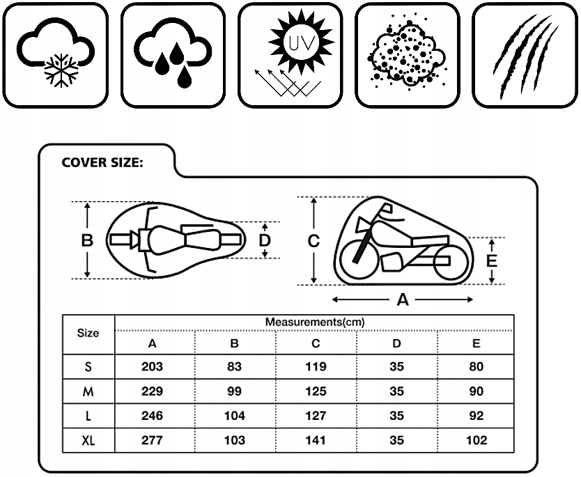 Очень высококачественный мотоциклетный покров известной компании Moretti size-xl, изготовленной из долговечных и устойчивых ко всем погодным условиям. Крышка предназначена для покрытия всего мотоцикла, квадроцикла или скутера, включая зеркала и колеса