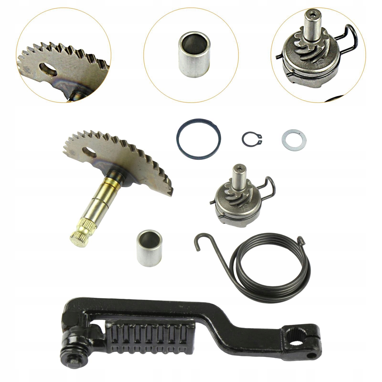 Материал: изготовлен из металлического материала, этот набор мотоциклевого стартового рычага создан таким образом, чтобы противостоять регулярному использованию и обеспечить длительную долговечность