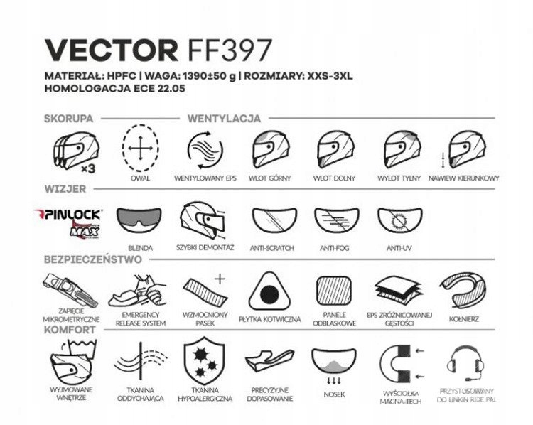 Производитель также позаботился о европейских стандартах безопасности, поэтому шлем имеет допуск ECE22-05. Продукция LS2 — идеальный выбор, если мы хотим обеспечить очень высокий уровень безопасности, но у нас ограниченный бюджет, но при этом мы не хотим отказываться от должного комфорта или красивого дизайна.