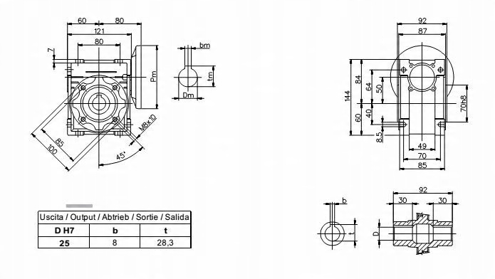 передаточное число 1/25 - 56 об/мин 47 Нм