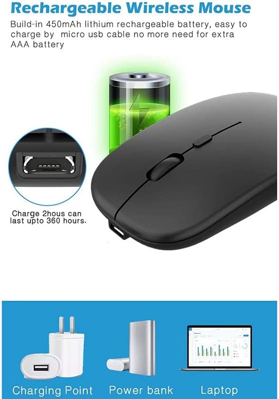 Беспроводная мышь с возможностью зарядки ультра тихой оптической мыши 2.4G с приемником USB и C, подходящей для ноутбука (черный) h1>