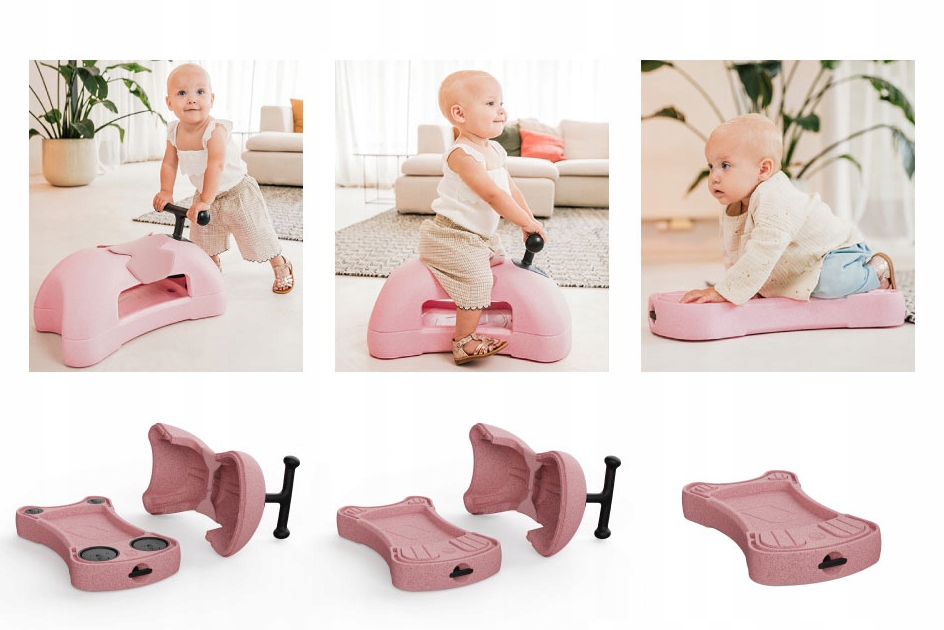 Стабильный. поверхность сидения, на которую можно забраться, и хорошее сцепление с полом помогают малышу научиться вставать и делать первые шаги, а легкость, профилированная ручка на нужной высоте и скользящие подушечки позволяют ребенку безопасно управлять автомобилем автомобиль перед ним.